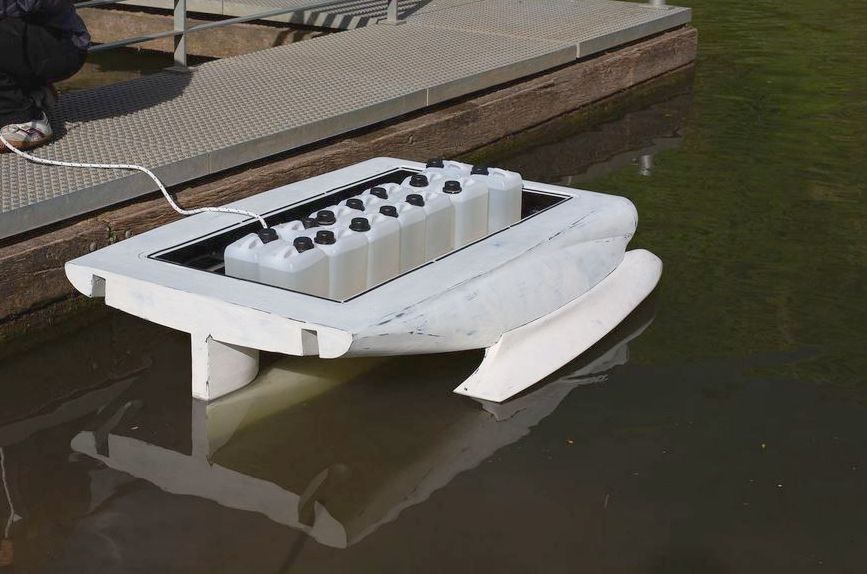 The goal of the boat concept is to balance static and dynamic stability, high righting moment and low drag on a given displacement. Based on computer simulations and small scale model tests, the combination of a submerged lifting body and two outboard hulls seems to be a good choice for the task.